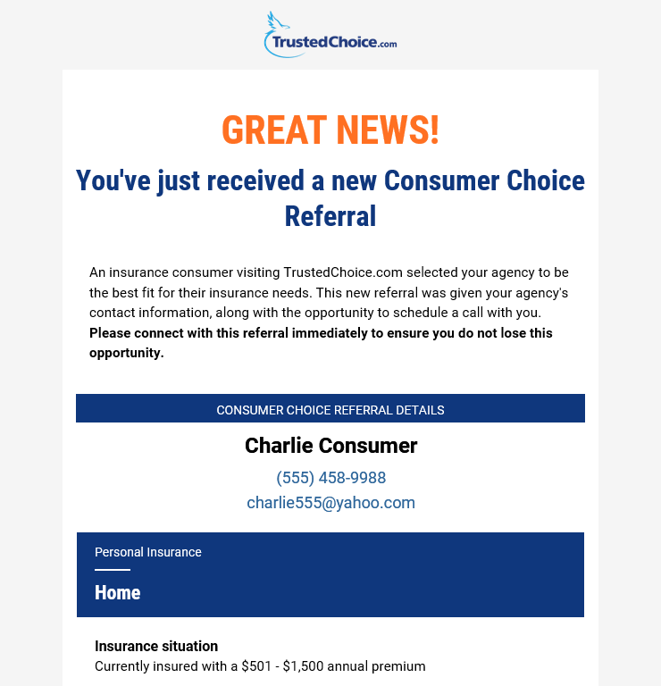 When worked correctly, Consumer Choice Referrals have been known to have a high return. When a shopper selects an Edge Professional agency, that agency will receive an instant referral notification detailing the shopper’s contact information and the best times to reach them. These are not leads, these referrals are high-intent prospects who chose your agency and want to talk to you. (That’s even more reason to maximize your Edge profile and make sure you’re seen!)
